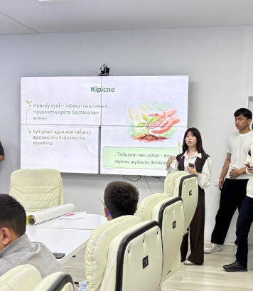 During the lesson, students watched a video about spring changes in nature and shared their thoughts. Group activities were organized, where participants prepared and presented posters based on assigned topics.