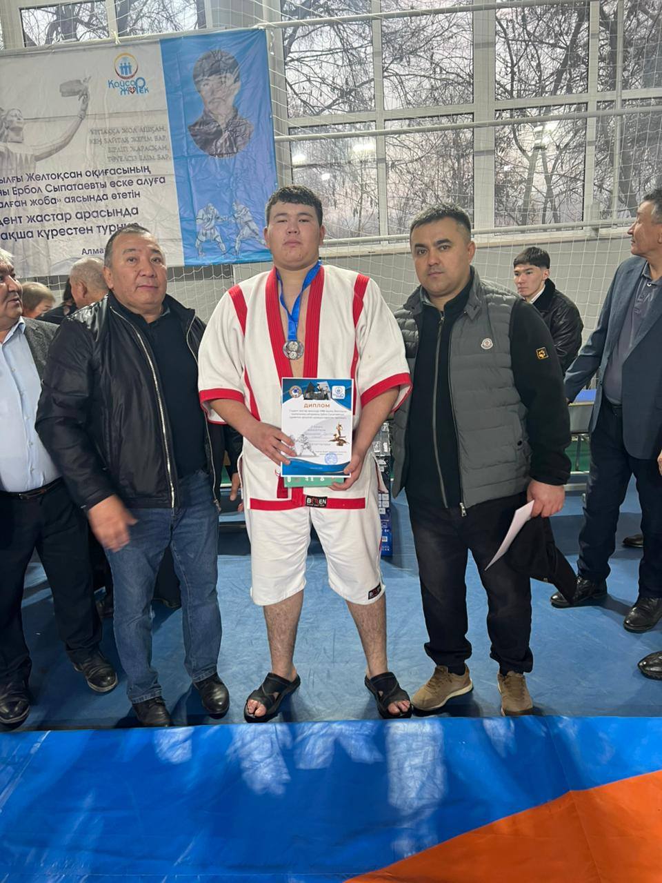 ✅ On December 3, 2025, Abai KazNPU hosted an intense Kazakh kures tournament dedicated to Erbol Sypatayev. In this competition, Tolepbergen Sultan — a student of the Faculty of Forestry and Land Resources, and a true example of strength and endurance — won 2nd place in the +100 kg weight category, confidently demonstrating his skill.