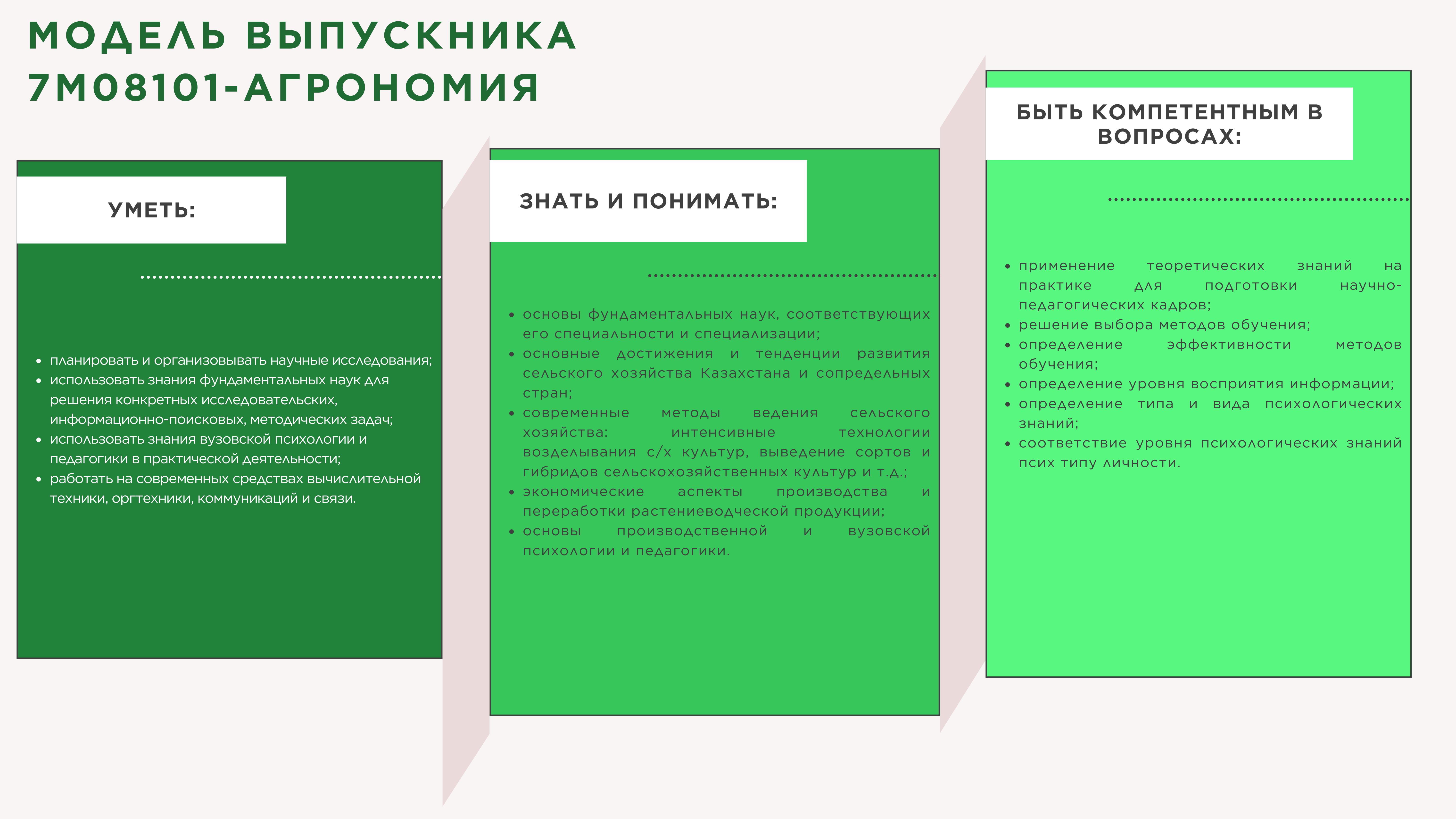 Образовательная программа 7М08101 - Агрономия включает 1 (один) образовательные траектории: