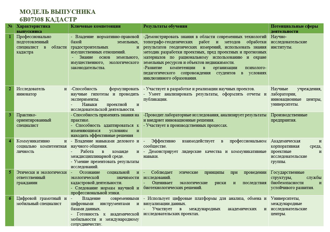 Самостоятельно решать вопросы в области кадастра, оценки земель и недвижимости, регистрации прав на недвижимое имущество, мониторинга земель, регулирования земельных отношений; участие в технической инвентаризации объектов недвижимости и межевании земель; участие в проведении кадастровой оценки земельных участков и объектов недвижимости; в эффективном использовании знаний в различных ситуациях по вопросам использования земли, разрешения земельных споров; выполнению земельно‐кадастровых работ.