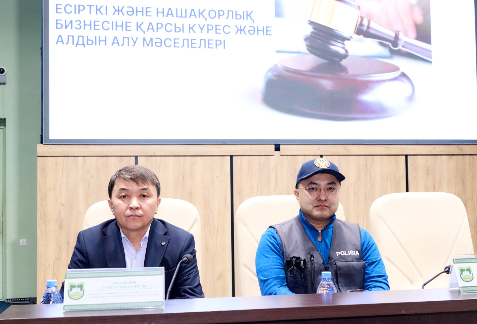 KazNARU-да жастардың құқықтық сауаттылығын арттыруға және олардың жеке әрі қоғамдық қауіпсіздік мәселелеріне жауапкершілігін қалыптастыруға бағытталған «Есірткі және нашақорлық бизнесіне қарсы күрес және алдын алу мәселелері» тақырыбында ақпараттық-түсіндіру іс-шарасы өтті.