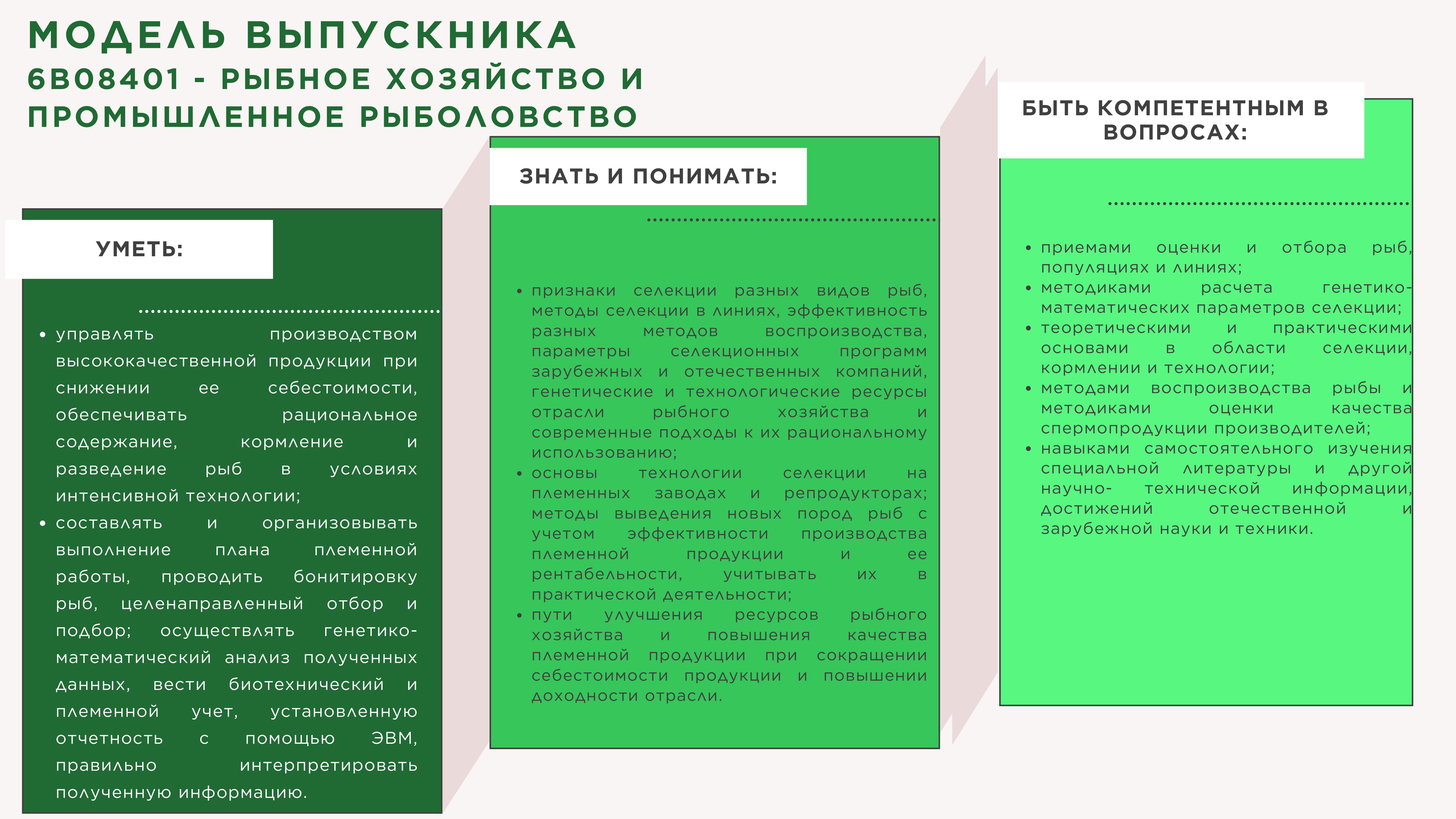 -Научно-исследовательский (оценка рыбоводно-биологических показателей, физиологического и ихтиопатологического состояния объектов аквакультуры и условий их выращивания; оценка основных биологических параметров популяций гидробионтов и водных экосистем, экологического состояния водоемов по отдельным разделам (этапам, процессам) в соответствии с утвержденными методиками; проведение мониторинга параметров водной среды, объектов промысла и аквакультуры);