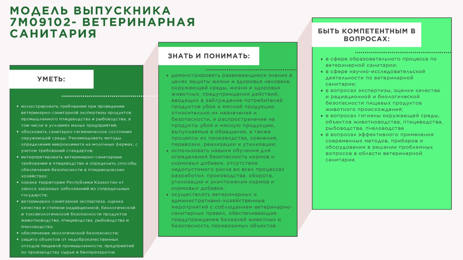 Магистры образовательной программы «7M09102-Ветеринарная санитария» могут занимать первичные должности: