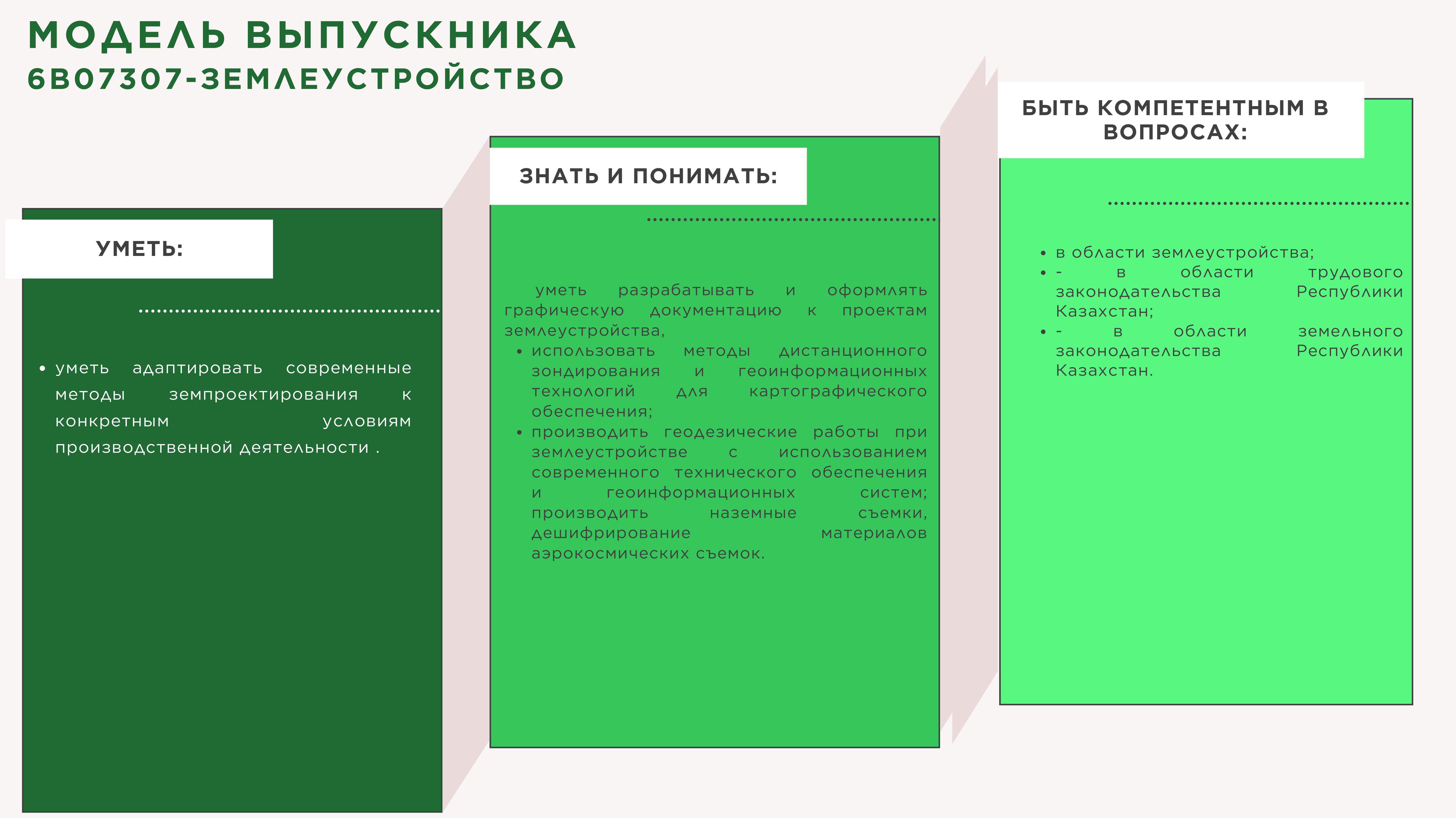 Самостоятельно решать вопросы в области регулирования земельных отношений;в эффективном использовании знаний в различных ситуациях по вопросам использования земли, разрешения земельных споров; по выполнению всех видов земельно-кадастровых работ, оценки земель и недвижимости, регистрации прав на недвижимое имущество, мониторинга земель.