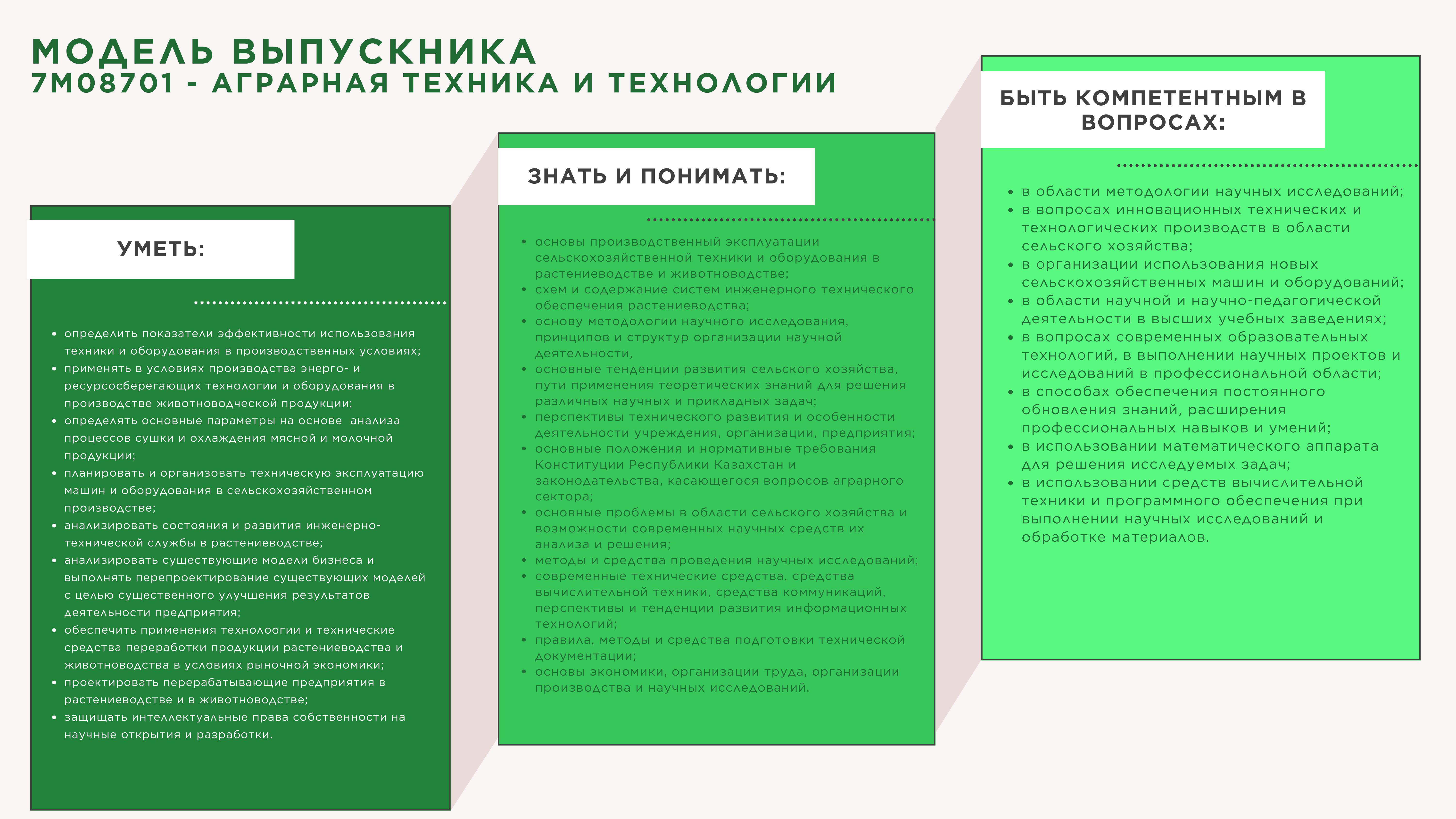 В вопросах инновационных технических и технологических производств в области сельского хозяйства, в организации использования новых сельскохозяйственных машин и оборудований, в вопросах выполнении научных проектов и исследований в профессиональной области, в способах обеспечения постоянного обновления знаний, расширения профессиональных навыков и умений, в использовании математического аппарата для решения исследуемых задач, в использовании средств вычислительной техники и программного обеспечения при выполнении научных исследований и обработке материалов.