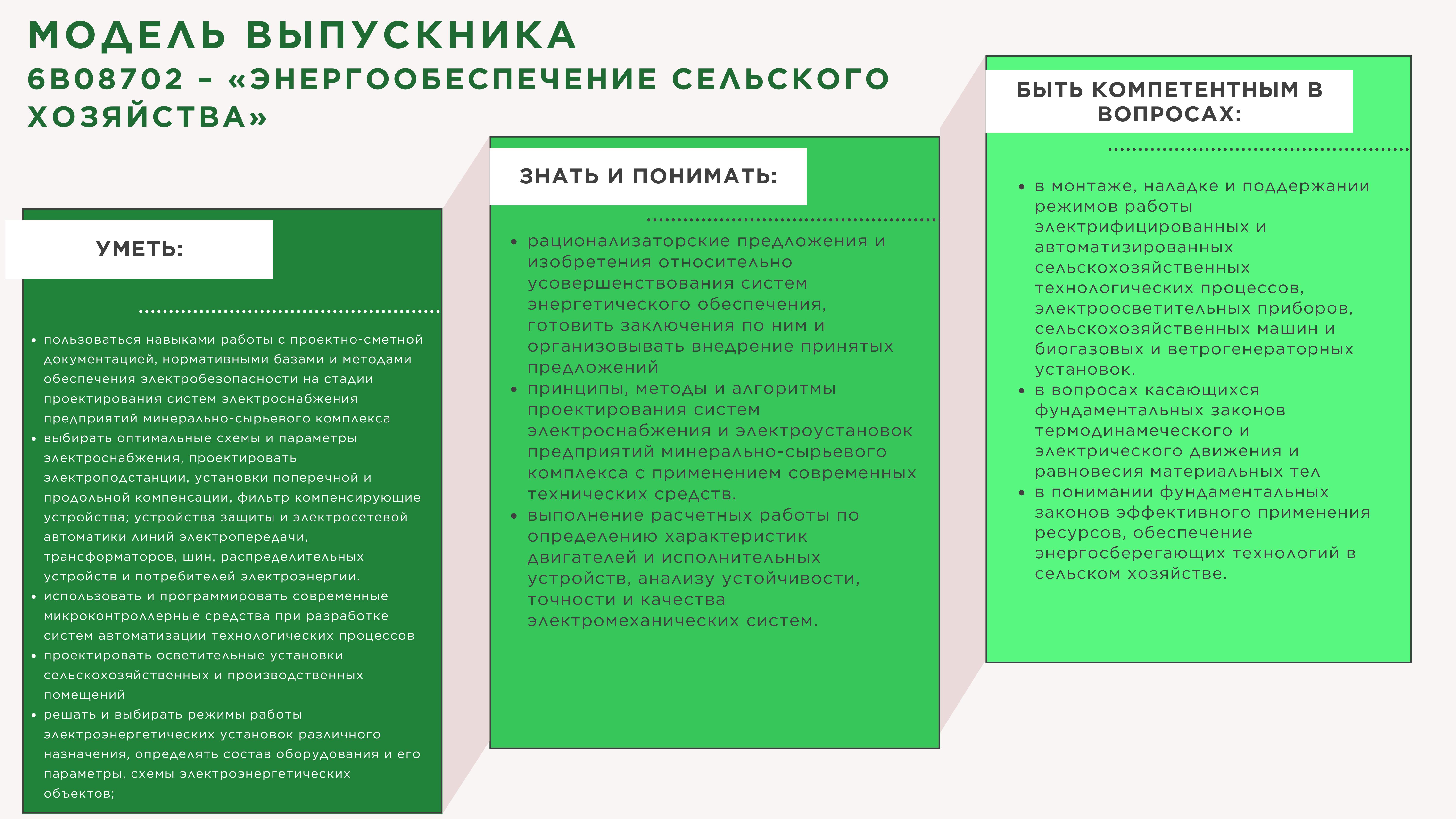 - в проведении техническое обслуживание и контроль за качеством функционирования, совершенствования, модернизации и улучшения технико-экономических показателей электрических станций и подстанций, электрических систем и сетей, предприятий сельского хозяйства, нетрадиционных и возобновляемых источников энергии;