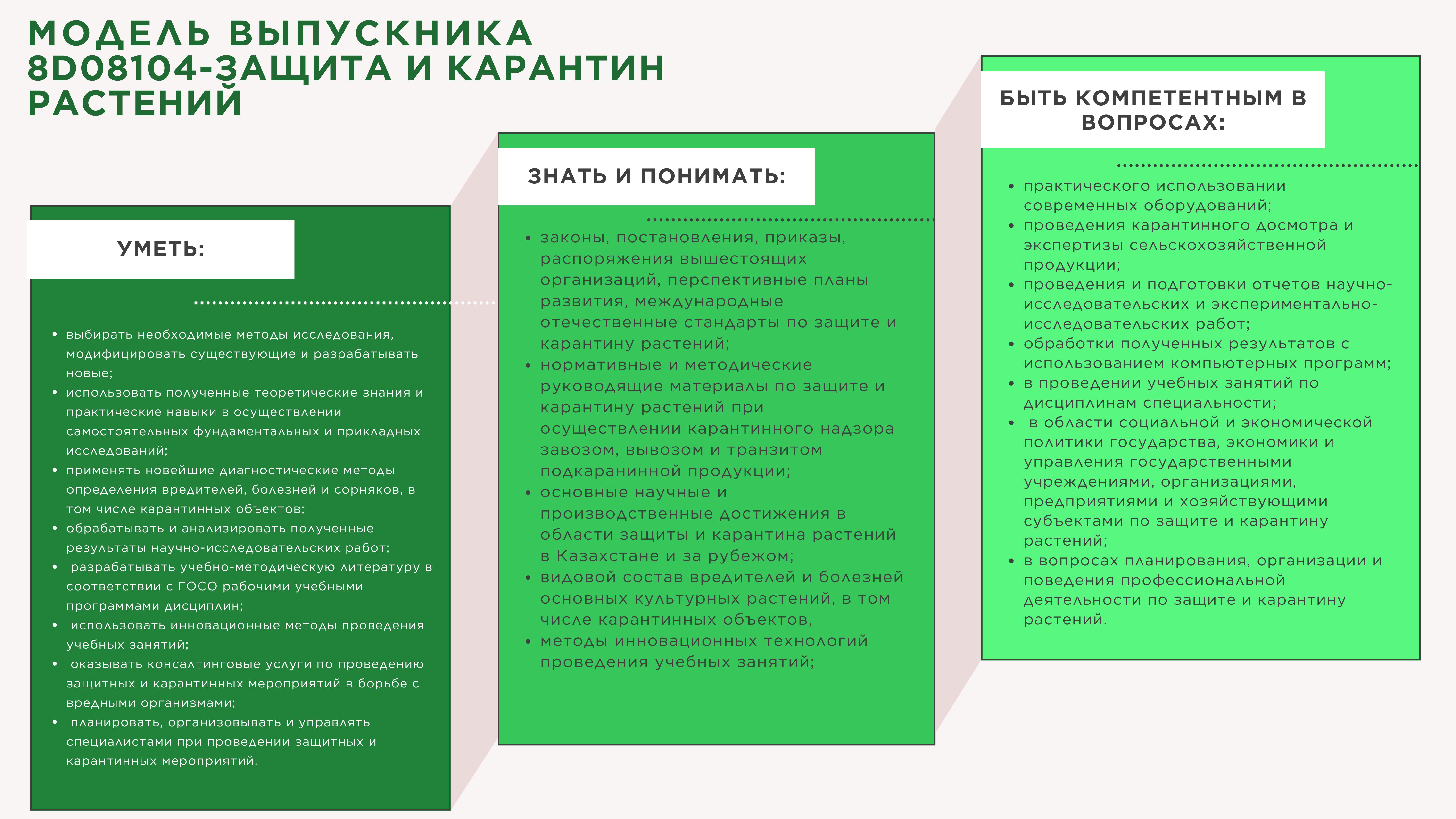 -в составлении и осуществлении государственных общеобязательных стандартов образования, типовых и рабочих учебных программ дисциплин бакалавриата, магистратуры и докторантуры специальности «Защита и карантин растений»;