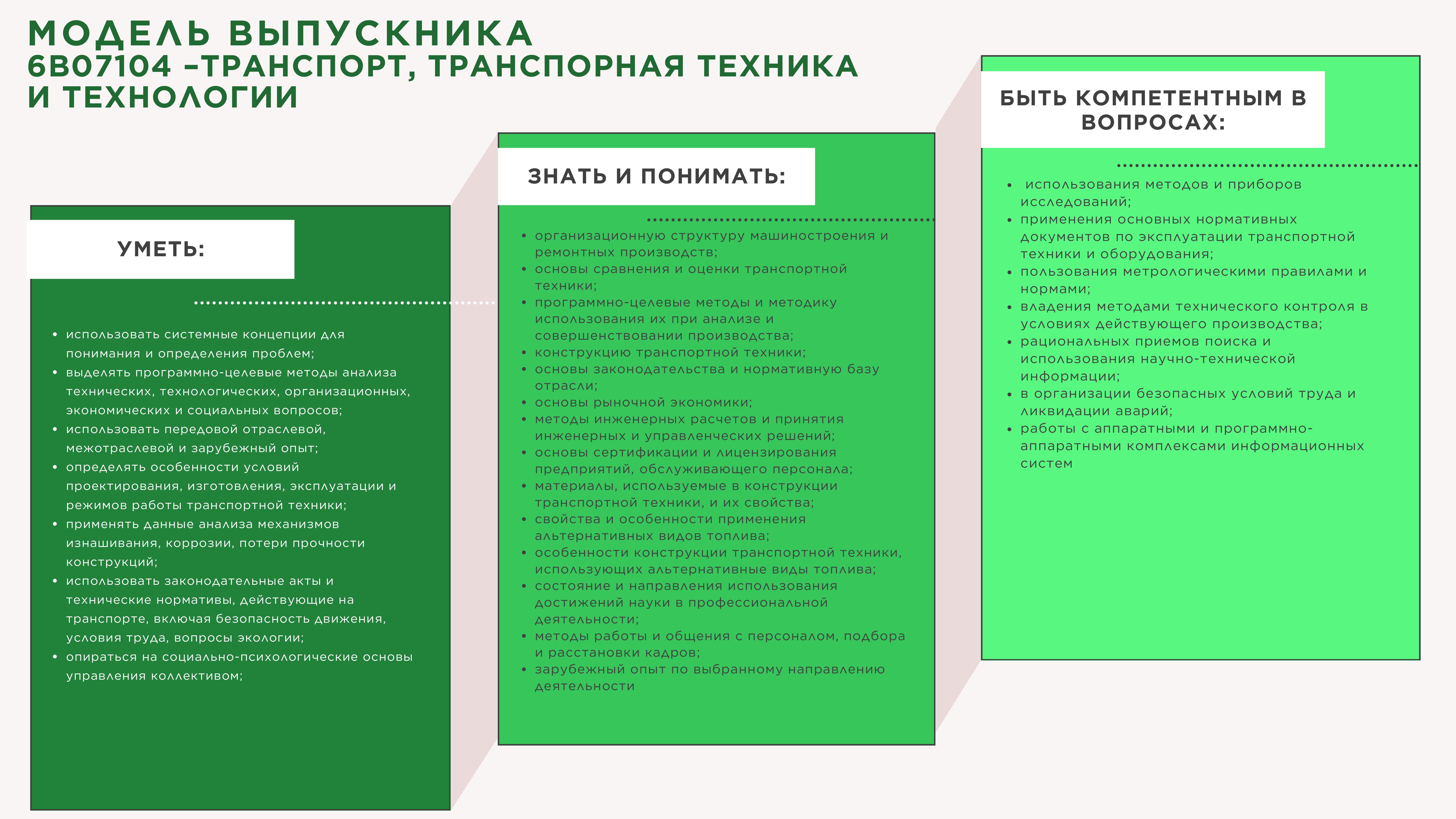 В умении по разработке и освоению новых и модернизации действующих технологических процессов расчету проектируемых деталей и сборки машин, обеспечивающих требуемое качество машин при их минимальной себестоимости и максимальной производительности безопасного труда, организации и управлению транспортным производством; анализу эффективности производства, разработке мероприятий по ее повышению, выполнению научных исследований с целью повышения эффективности транспортных услуг и др.